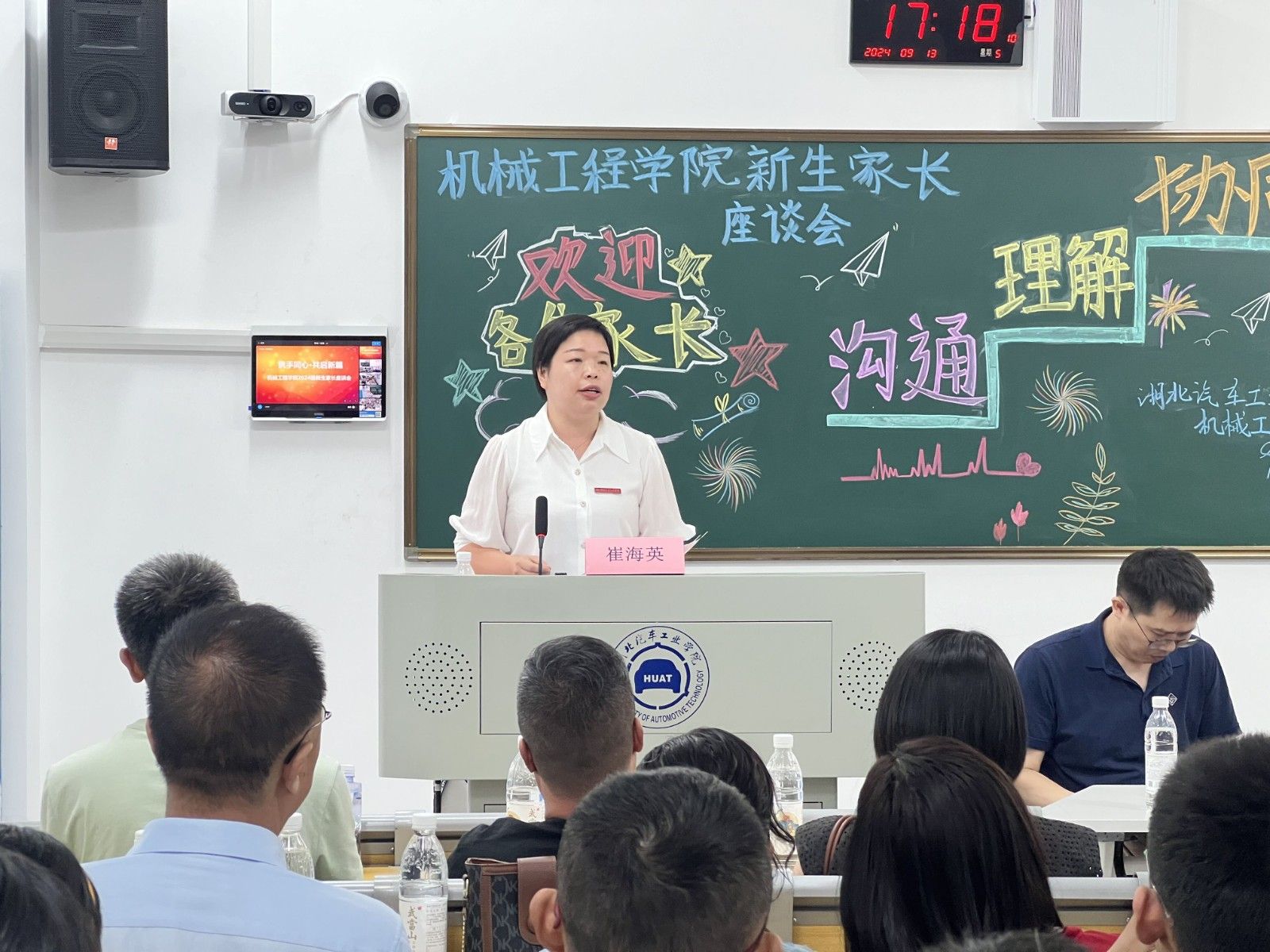 王保华从学院简介、专业特色、学生培养三个方面介绍了学院的发展情况,他表示,学院将进一步强化家校联动,希望家长们能够更多地参与并了解学院的育人工作,通过家校协同共同提升育人的质量和效果。同时,王院长表达了对于2024级新生的期望,期待孩子在大学广阔的平台上拓展视野、锻炼能力,为个人未来的发展奠定坚实的基础。